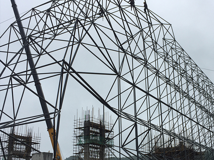 4.满堂脚手架是最有利的 螺栓球网架萧县施工平台,它在确保萧县施工安全的同时,又能承当部分网架重量,有效防止网格下沉变形,以及调整网架安装过程中的误差积累和支座与预埋件之间的偏离。